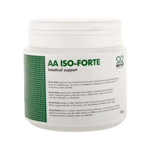 Iso-Forte der Marke AA-Vet ist ein natürliches und sicheres Ergänzungsfuttermittel zur Unterstützung der Darmgesundheit. Dank Iso-Forte wird der Stuhlgang weicher und die allgemeine Magen-Darm-Funktion gefördert. Es ist besonders für die Anwendung bei älteren Hunden oder nach Operationen geeignet.