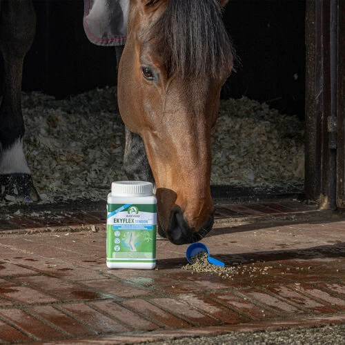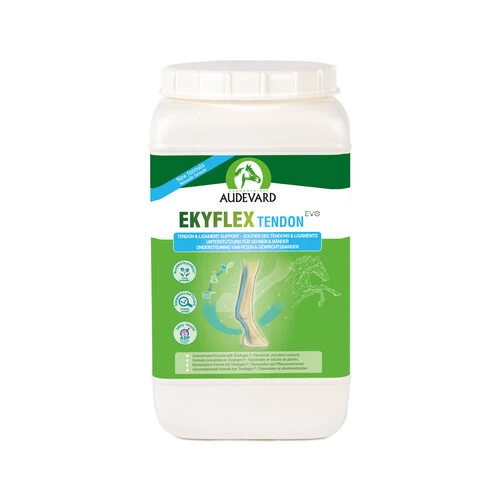 Das Audevard Ekyflex Tendon EVO wurde entwickelt, um die Sehnen und Bänder von Pferden zu unterstützen. Die neue Formel bietet eine dreifache Wirkung. Sie unterstützt die Bildung von hochwertigem Kollagen, trägt zur Optimierung des Umfelds für Sehnen und Bänder bei und unterstützt die Aufrechterhaltung der Befestigung von Sehnen und Bändern am Knochen. Darüber hinaus ist es eine Anti-Doping-Formel, so dass es während der Wettkampfsaison sicher verwendet werden kann.
