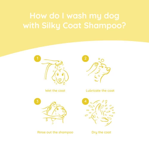Sprühen Sie auf das trockene Fell oder tragen Sie es nach dem Waschen Ihres Hundes mit dem Greenfields Silky Coat Shampoo auf. Das Produkt ins Fell einmassieren und ca. 1 Minute einwirken lassen. Dann kämmen Sie das Fell, ohne es auszuspülen.