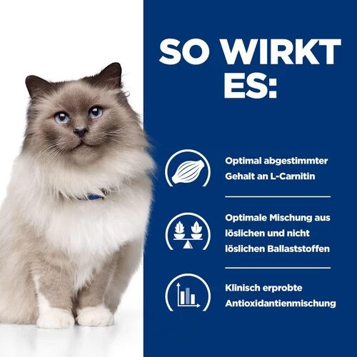 - Hill’s r/d Feline ist reich an Ballaststoffen, um ein Hungergefühl zu reduzieren und Betteln zu vermeiden.