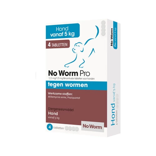 - 1 Tablette No Worm Pro Hund enthält 12,5 mg Milbemycin-Oxim und 125,0 Praziquantel.